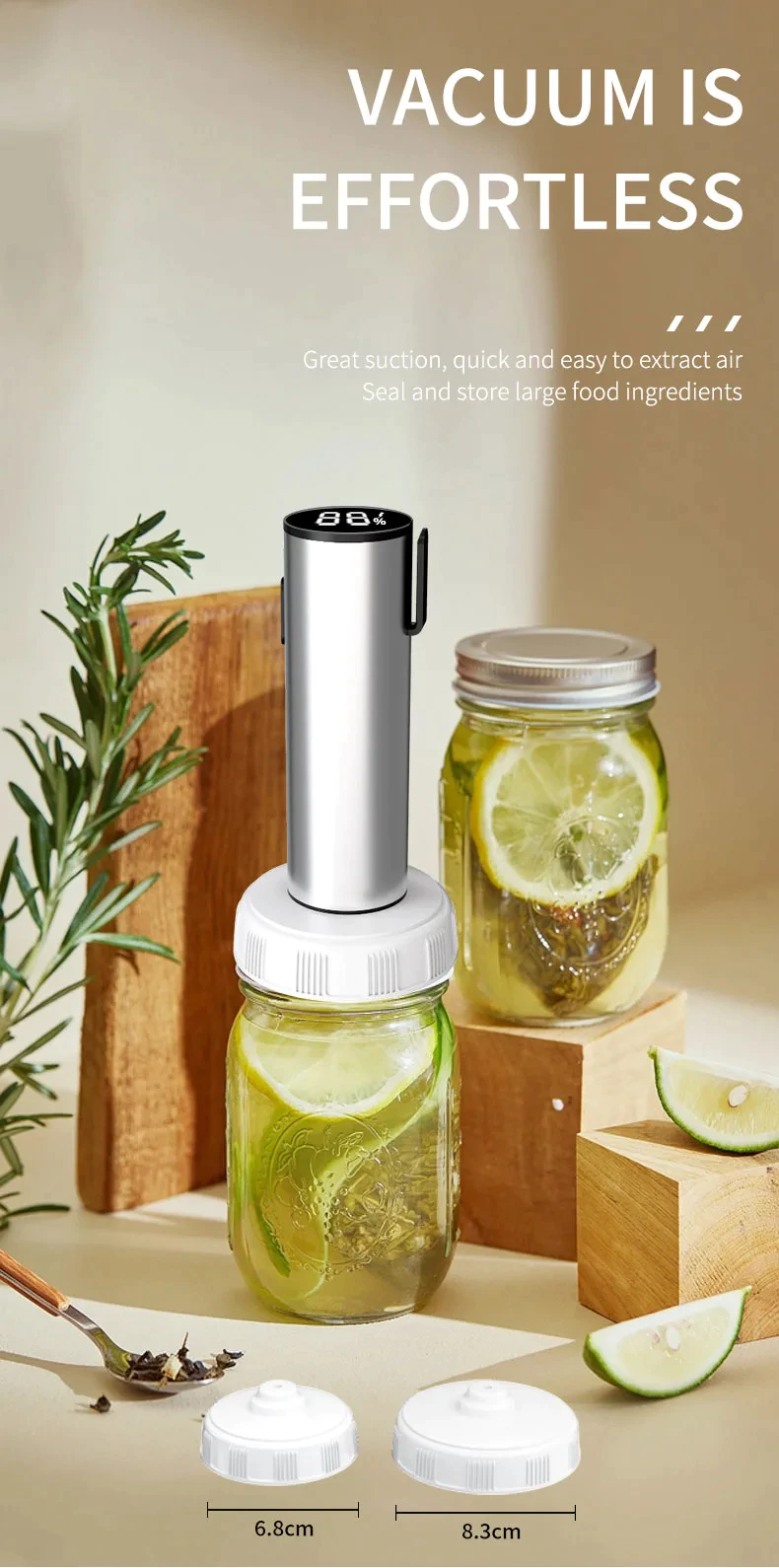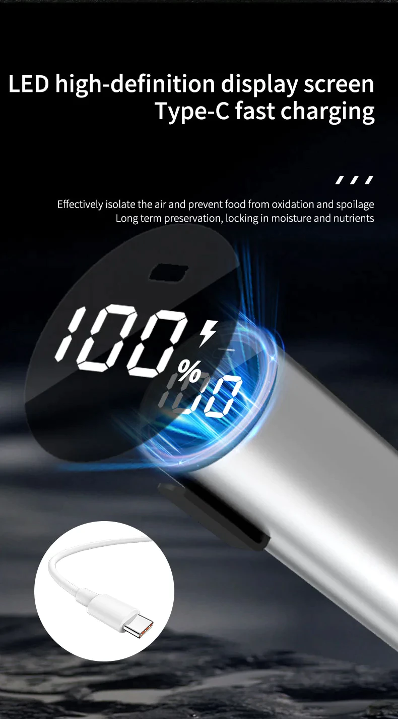 | Packaging Accessories: ①Host ②installation bag ③Instruction ④Type-C charging cable ⑤opener ⑥Lids: 3.3in*5、2.7in*5 ⑦Food Bags*10 ⑧Red wine stoppers*1 ⑨Inflatable needles ⑩Mason can fitting port | |||