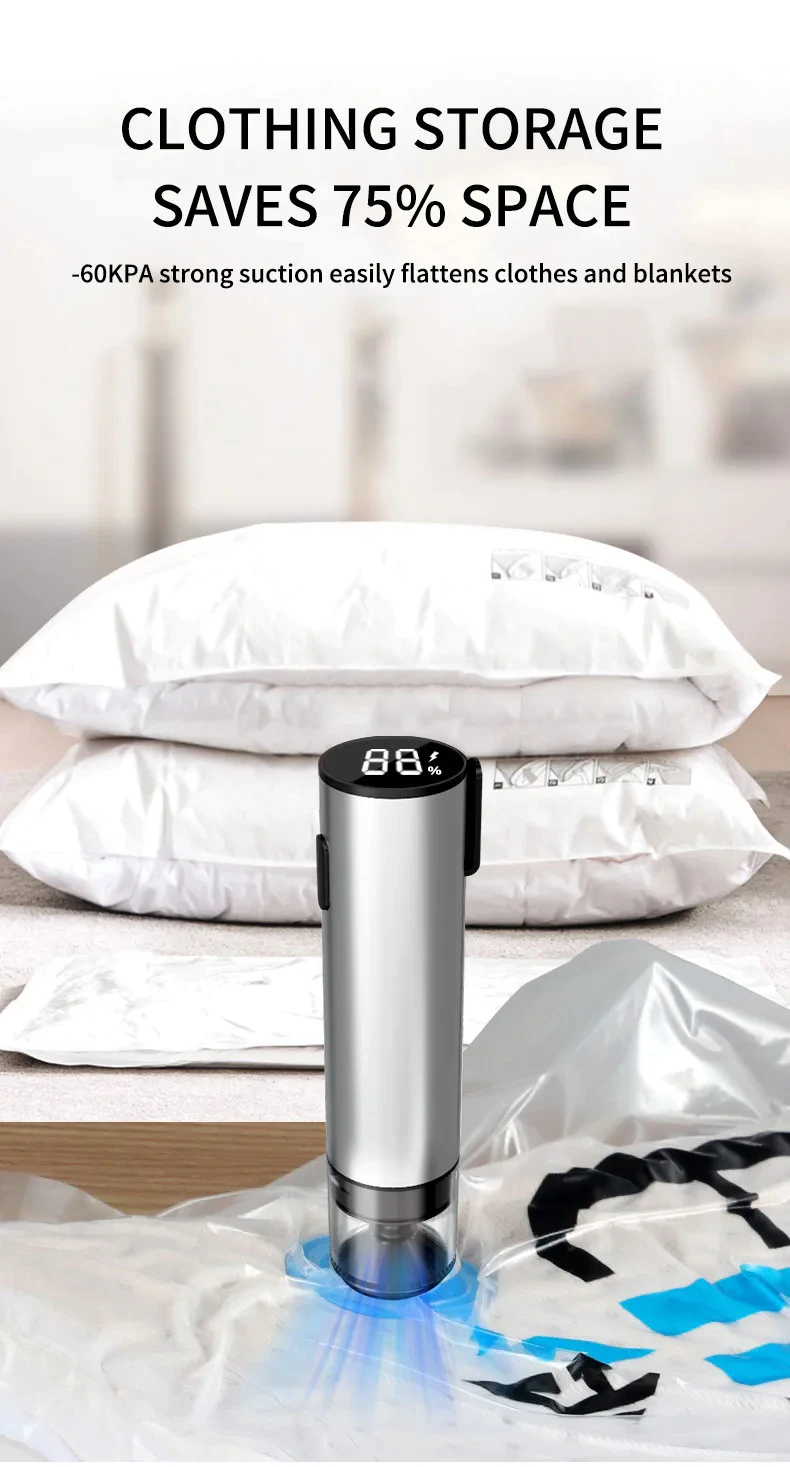 With an upgraded 80kPa suction power, it easily seals clothes, blankets, or food bags to reduce volume and save valuable storage space at home or while traveling.