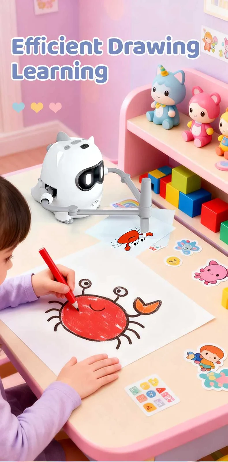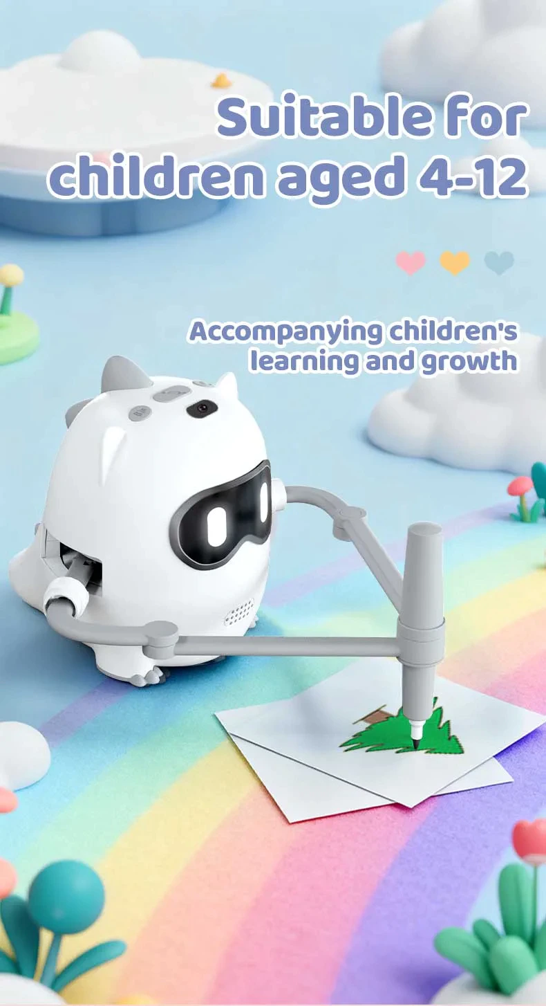 【Fun Drawing Companion for Kids】Our drawing robot is designed for children aged 5-10, Its cute shape design and child-friendly functions make it a perfect addition to any toy, combining entertainment and learning in one.The drawing robot can stimulate children's potential, aiming to cultivate children's skills such as hand-eye coordination, color perception, painting and literacy.